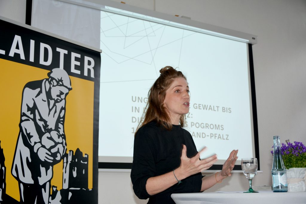 Referentin war Carolin Manns aus Koblenz und Bildungsreferentin für den Förderkreis Synagoge Laufersweiler im Hunsrück, die seit 2023 im Auftrag der Landeszentrale für politische Bildung in Mainz eine Arbeitsgruppe leitet. So bekannt dieses Datum und dieser Wendepunkt in der deutschen Geschichte ist, so unbekannt sind viele Details im Ablauf der Novemberpogrome, vor allem was die genaue Zahl der Opfer betrifft. Im öffentlichen Bewusstsein, leider auch noch in einigen aktuellen Schulbuchdarstellungen, findet sich regelmäßig die Meinung, dass insgesamt 91 Opfer gezählt werden können.